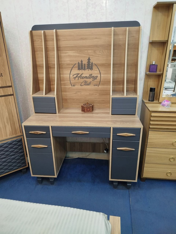 اقلام سرویس: تخت 200×90 به همراه سه کشو ریلی ، دراور آینه، میز تحریر، کمد دو درب (عرض 90)، پاتختی دو کشو